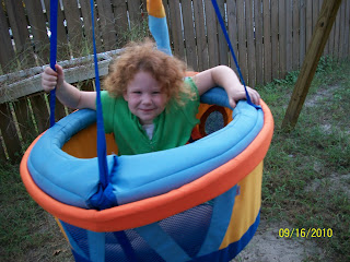 It doesn't seem that long ago when Timmy hated to be outside if there was a breeze blowing. Now he loves to be outside and have the wind blow in his face and ruffle his hair. Just about every time now when we take him outside to swing if the wind isn't blowing Timmy will call the wind, woo-woo. If the wind should happen to blow after he has called it, Timmy will laugh hysterically and continue to call the wind once it has ceased in hopes that it will start blowing once again.